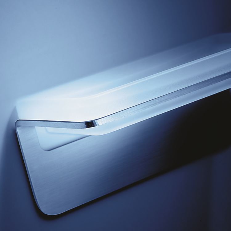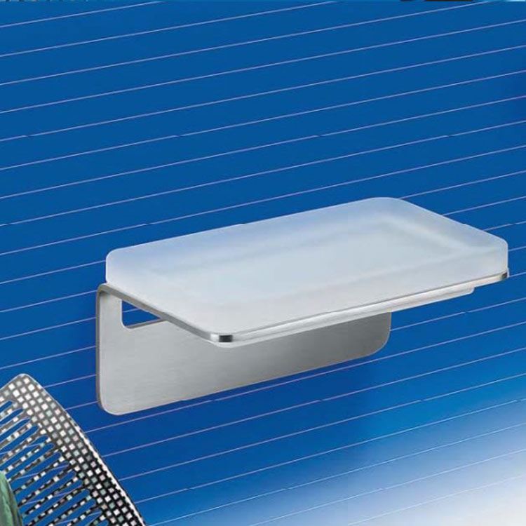 Seifenhalter Over aus Colombo Design aus gebürstetem Stahl AISI 316 L Satin-Ausführung mit natürlichem Säureglas.